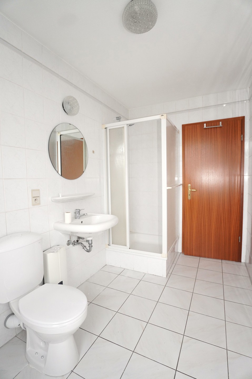 Wohnung 2: Großzügiges und lichtdurchflutetes Wohnzimmer mit Zugang zu einem optimal besonnten Balkon, Küchenbereich, ein Schlafzimmer sowie ein Badezimmer mit Dusche, Waschbecken, WC und Waschmaschinenanschluss.