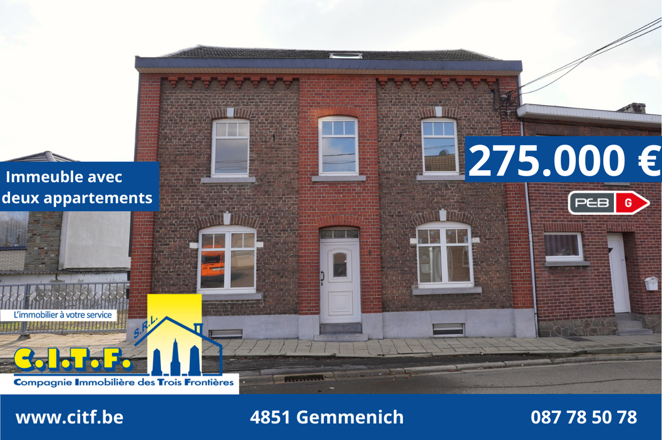 Charmantes und sehr gepflegtes Gebäude, derzeit bestehend aus zwei Wohneinheiten mit großem Garten und zwei Garagen, gelegen Bachstraße/Rue du Ruisseau 9 in 4720 Kelmis, auf einem Grundstück von 403 m².
