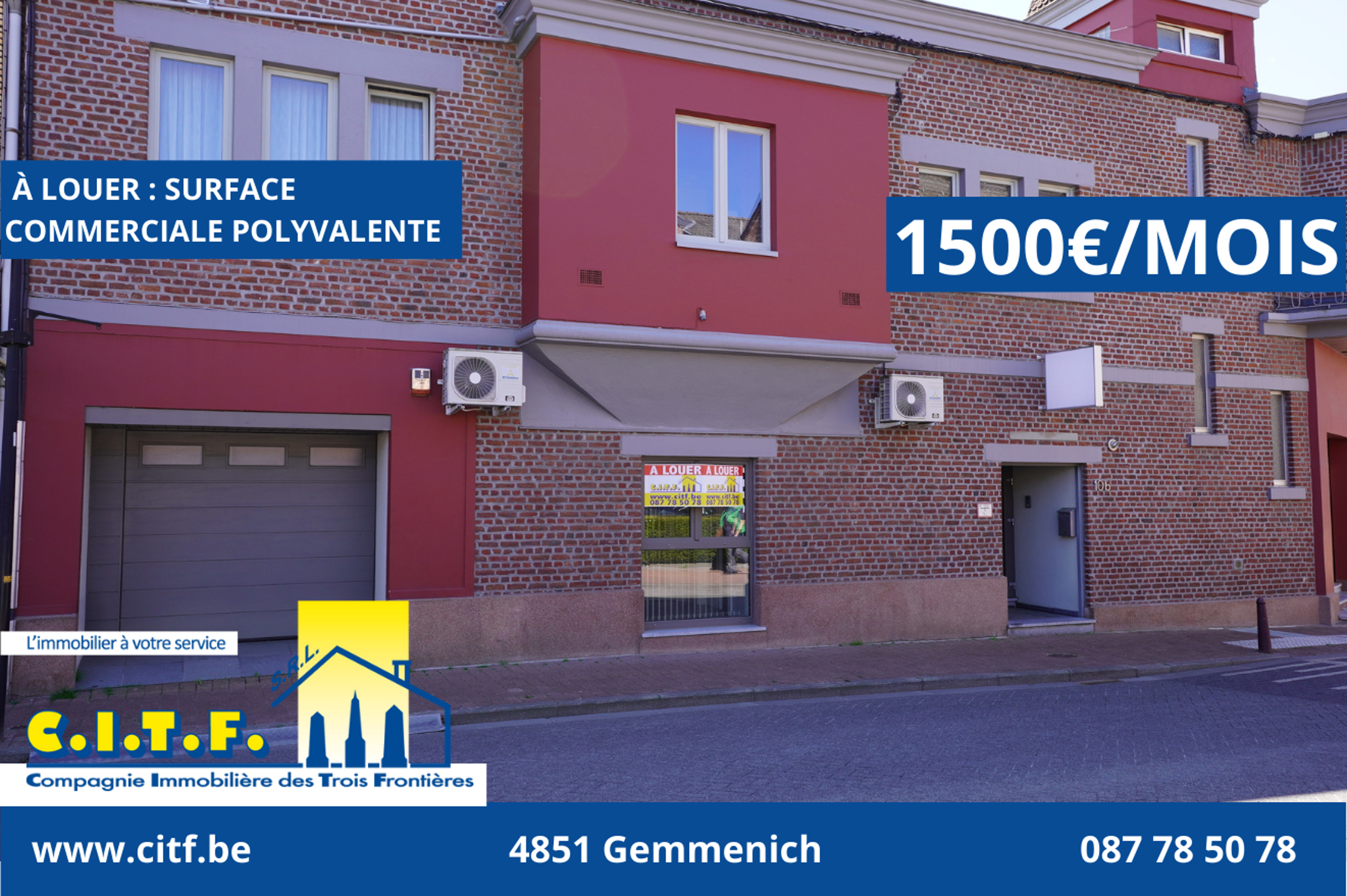 Geräumige, vielseitig nutzbare Gewerbefläche im Herzen von Kelmis, Patronagestraße 10B, gegenüber zahlreichen öffentlichen Parkplätzen, in Top Zustand.