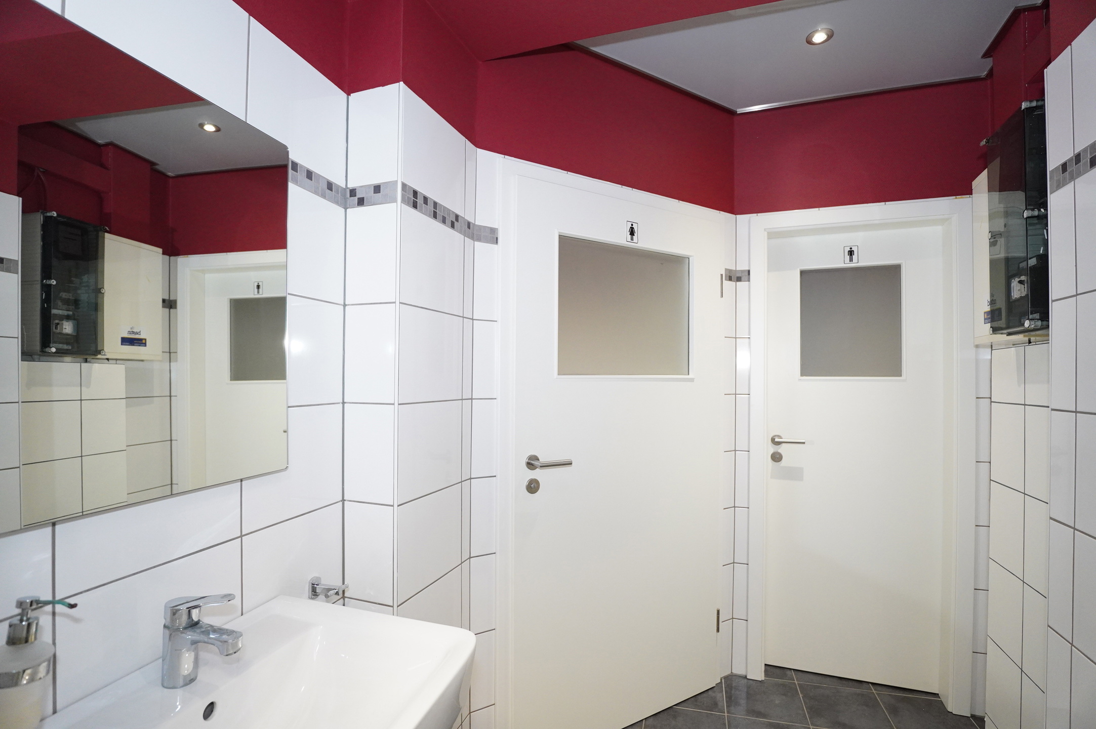 - 70 m² großer Ausstellungsraum, der durch eine integrierte Schiebetür flexibel in zwei Räume (32 m² und 37 m²) unterteilt werden kann,