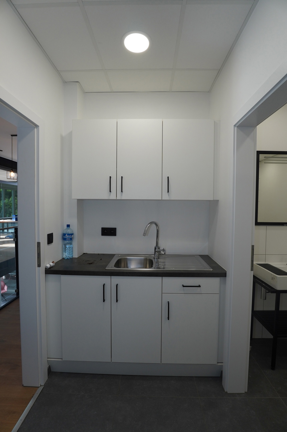 L’étage se compose de deux bureaux de direction spacieux, d’une vaste salle de réunion, d’un hall lumineux en mezzanine, de sanitaires hommes/femmes, ainsi que d’une kitchenette fonctionnelle équipée d’un évier et d’un réfrigérateur.
