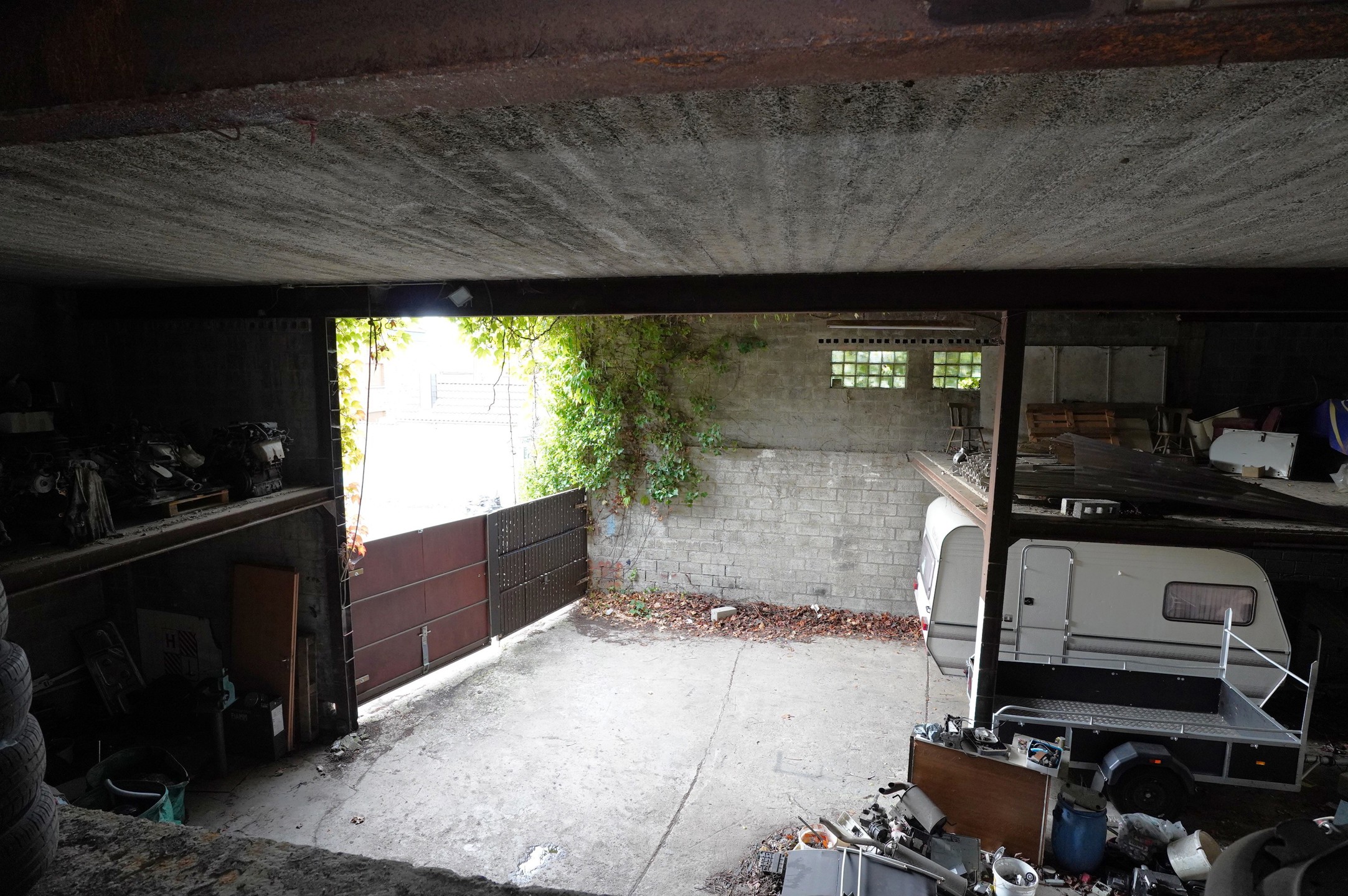 Het gebouw bestaat uit een hal/privéwerkplaats met een grondoppervlakte van circa 295 m², aangevuld met een verdieping van circa 180 m² en een extra ruimte op de tweede verdieping. Het geheel is bereikbaar via een private oprit die langs de linkerkant van het huis loopt dat aan de straat ligt.